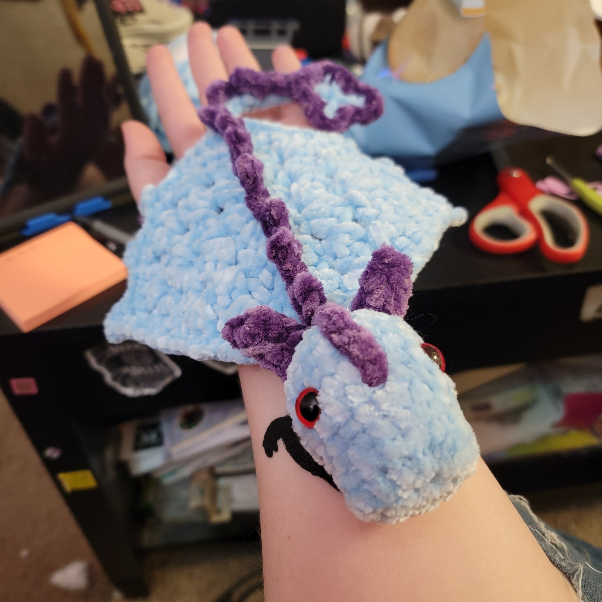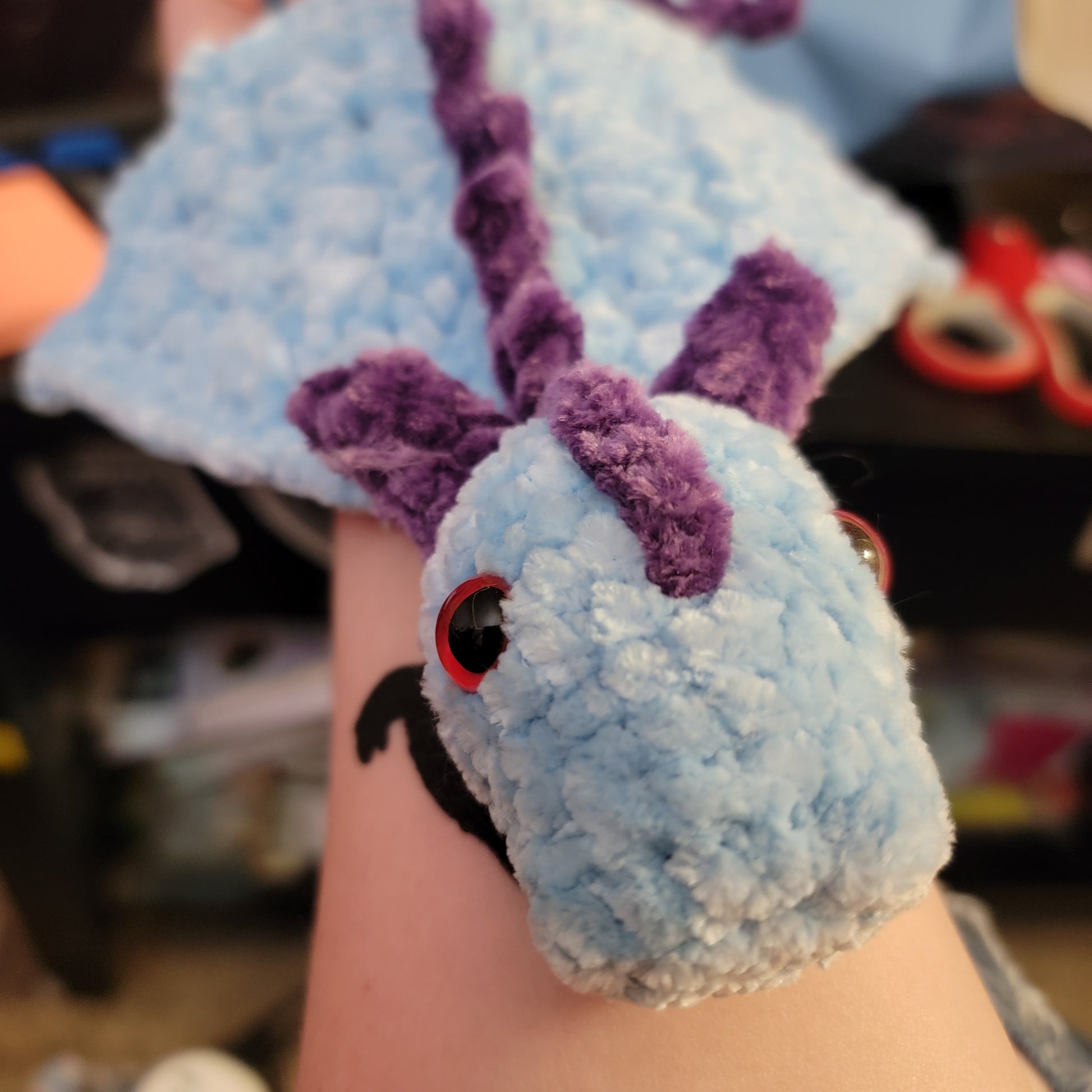 Roger, a small chenille yarn dragon, is ready for adventure!